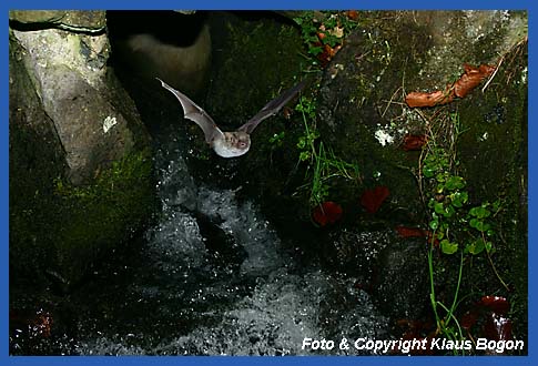 Von August bis September schwärmen Wasserfledermause vor Höhlen und Stollen. Hierdurch lernen Jungtiere verschiedene Winterquartiere kennen und die Männchen treffen auf Weibchen mit denen sie sich verpaaren. Jedoch auch zur Zeit des Winterschlafes sind einzelne Männchen aktiv und suchen gezielt im Quartier nach Weibchen und verpaaren sich mit diesen, auch wenn sie sich noch im lethargischen Zustand befinden. |