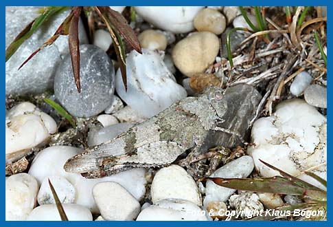 Blauflügelige Ödlandschrecke, Odipoda caerulescens Weibchen